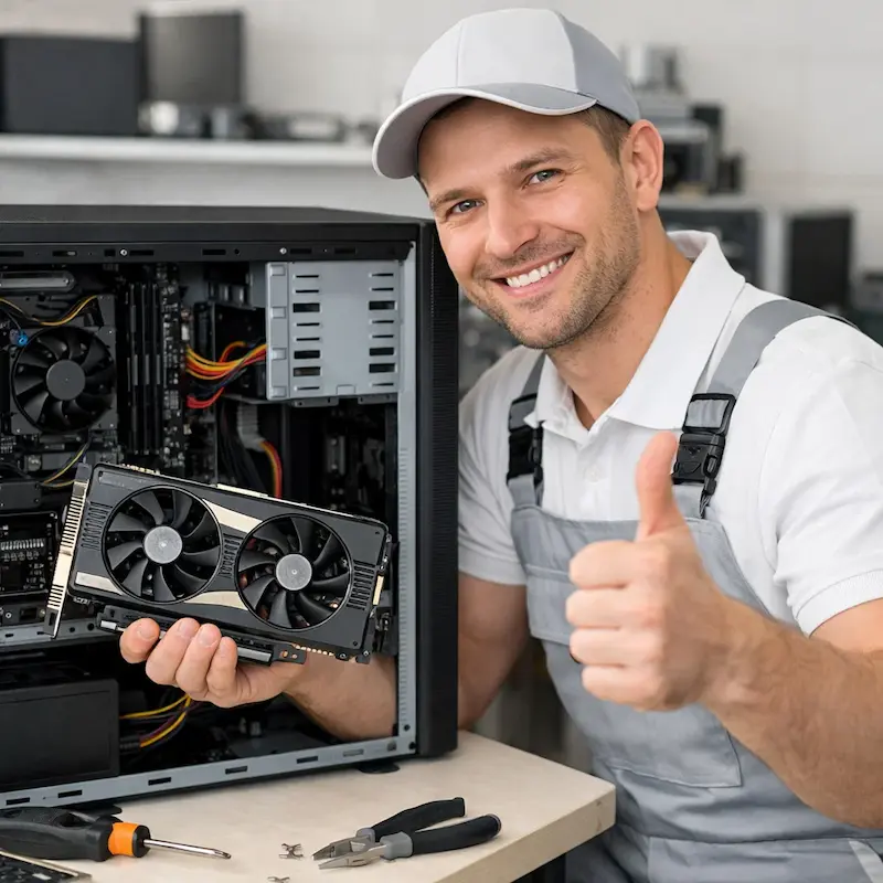 Все работы могут быть выполнены на месте - без необходимости перевозки компьютера в сервисный центр. Мастер приедет в согласованное время и выполнит замену или установку видеокарты за один визит.